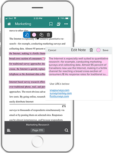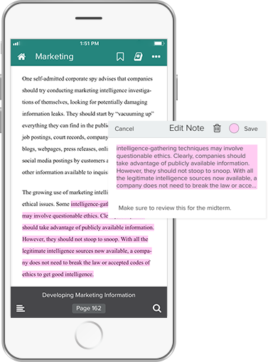 Support an active learning environment by adding notes to your highlights and sharing them directly to students’ textbooks. This is a great way to provide supplementary information in the form of videos, surveys, labs, quizzes, and more.