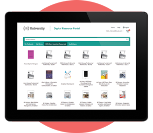 Schools can distribute digital textbooks through their existing LMS (e.g. Blackboard, Moodle, or D2L Bightspace). Alternatively, schools can leverage the Digital Resource Portal (DRP) – Kivuto’s industry-leading distribution platform – to put books and software into students’ hands through a free, custom-branded WebStore.